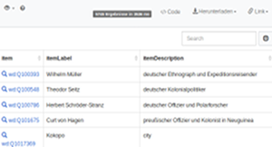 Grundlage bildet dabei ein Korpus von Personen, Organisationen und Ereignissen, die in einer Beziehung zu den deutschen Kolonien und Schutzgebieten stehen. Die Übersichten können nur so vollständig sein, wie die Datenlage es hergibt. Sie können mithelfen, die Daten zu vervollständigen.